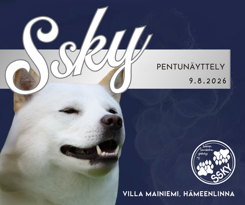 Suomen Seurakoirayhdistyksen erikoisnäyttely järjestetään 8.8.2026 ja pentunäyttely 9.8.2026